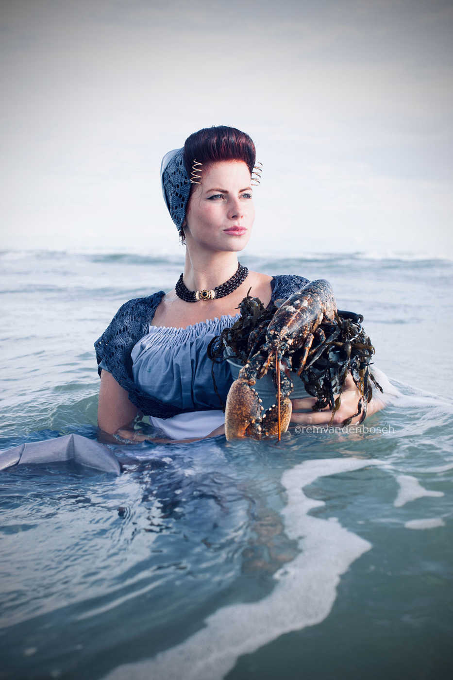 Dat was wel even spannend want dit is een van de eerste beelden met een model in dracht in de zee. Spannend wat het met het model zou doen, hoe de dracht en het haar eruit zouden komen, over de sieraden maar niet te spreken…