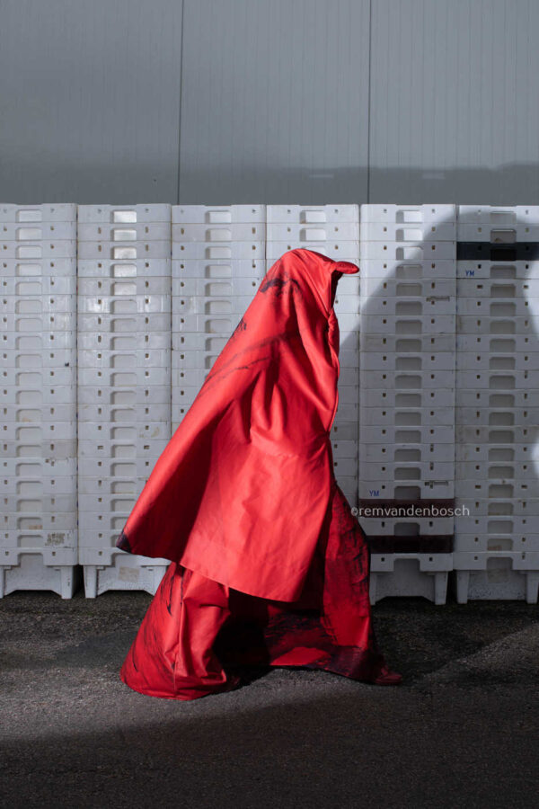 Dit werk van Rem van den Bosch toont Linde in onze moderne rode variant van de rouwdracht van Wieringen, lopend over de visafslag op Wieringen. De robuuste en krachtige uitstraling van het beeld benadrukt de unieke balans tussen traditie en de moderniteit van de industriële achtergrond. Rem’s artistieke visie nodigt de kijker uit om de kracht en schoonheid van deze krachtige combinatie te ontdekken.