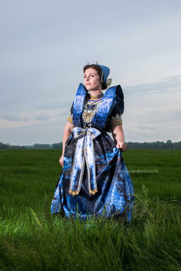 Op een open grasveld poseert het model in moderne blauw-witte variant van de traditionele Axelse dracht, wat een rustige en landelijke uitstraling geeft. Rem van den Bosch vangt hier de essentie van eenvoud en verbondenheid met de natuur, ideaal voor ruimtes die een landelijk gevoel willen uitstralen. Betoverende schoonheid: breng een unieke sfeer in uw huis of werkruimte met dit prachtige kunstwerk. Het biedt niet alleen vreugde, maar inspireert ook tot boeiende gesprekken. Kunst die het hart raakt en de ruimte compleet maakt.