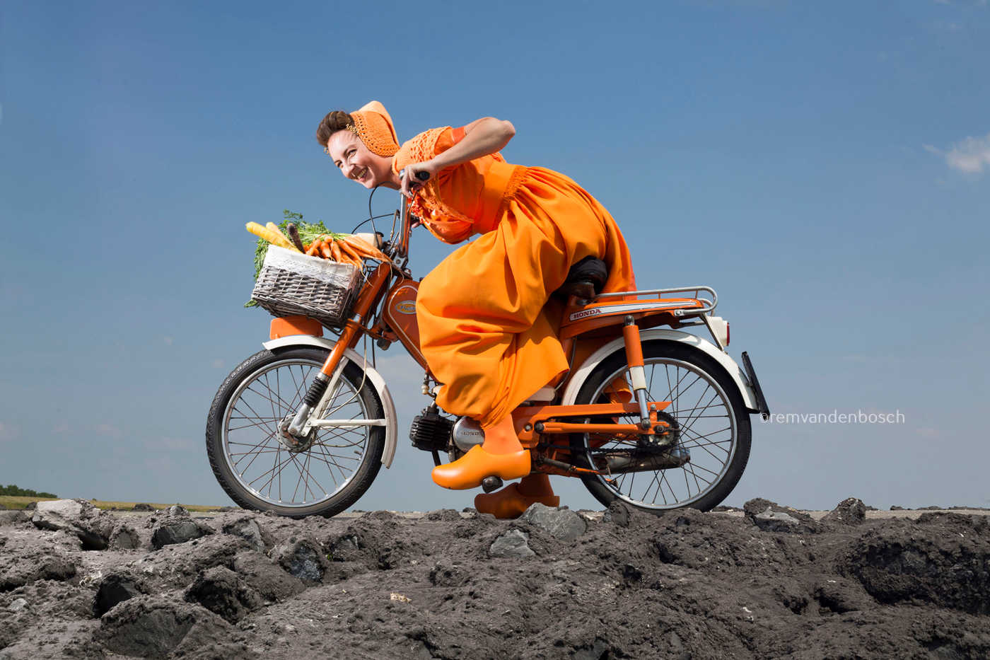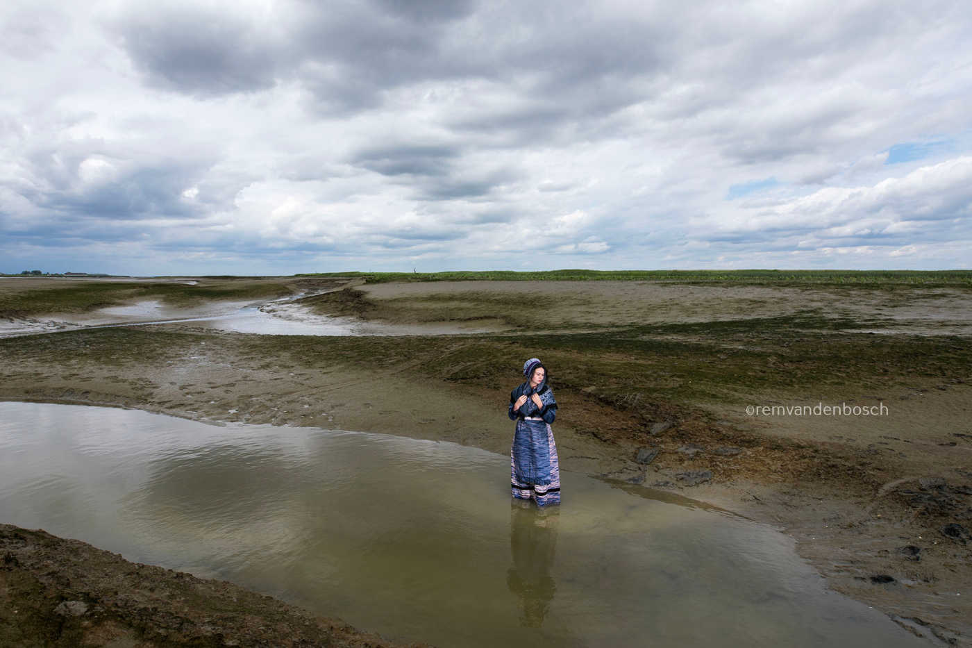 Dit serene portret van een model in moderne blauw-witte variant van de dracht van het Land van Cadzand, vastgelegd door Rem van den Bosch. Rem’s oog voor detail en harmonie zorgt voor een rustgevende sfeer die perfect past in elke ruimte die behoefte heeft aan kalmte en elegantie. Zijn werk legt niet alleen de klassieke uitstraling van de traditionele dracht vast, maar ook de essentie van rust en eenvoud. Kunst die het hart raakt en de ruimte compleet maakt.